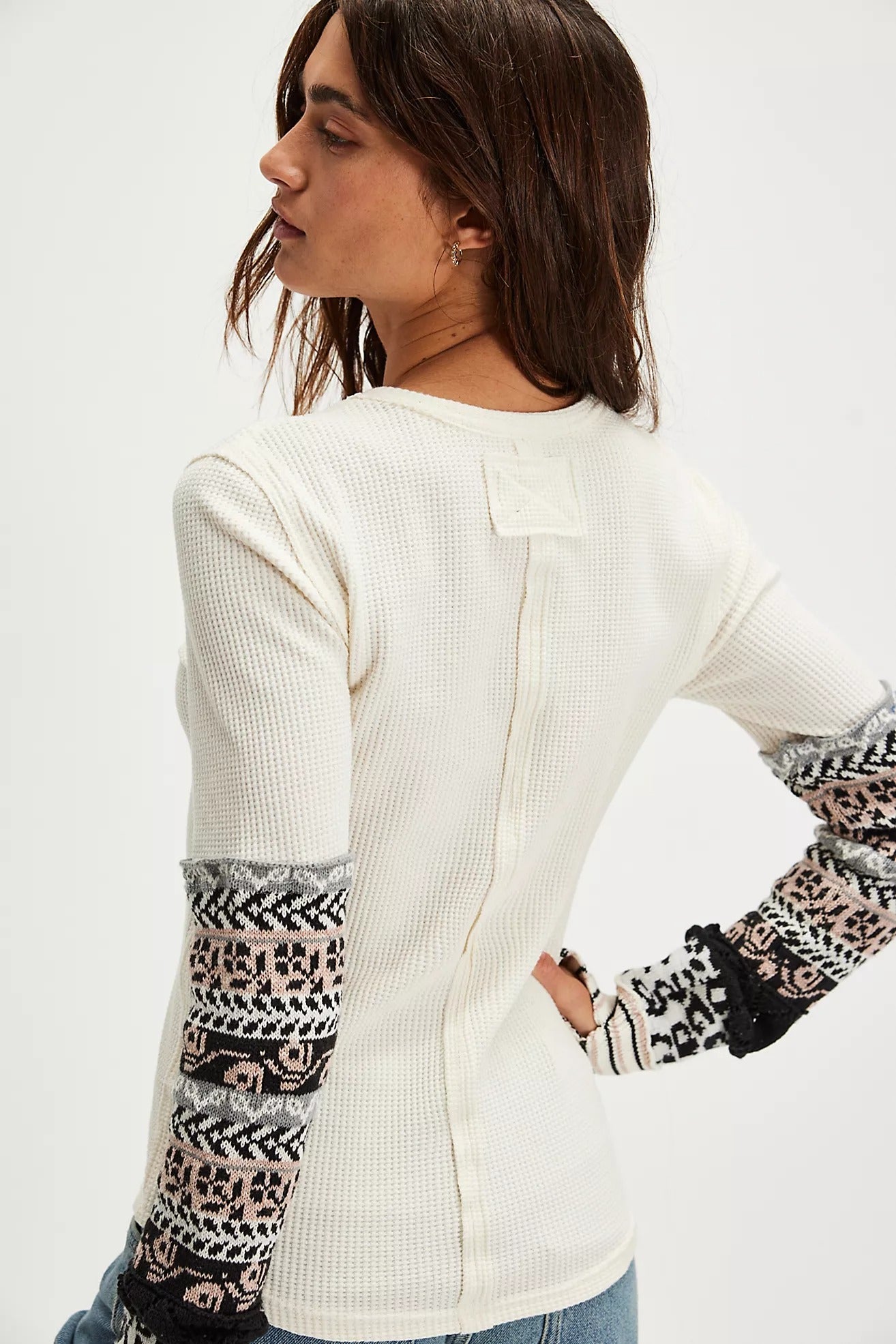 La saison des menottes est enfin ici. Ce haut de notre collection We The Free présente une coupe décontractée et un style à manches longues avec des poignets imprimés exagérés et des détails de trou pour le pouce.