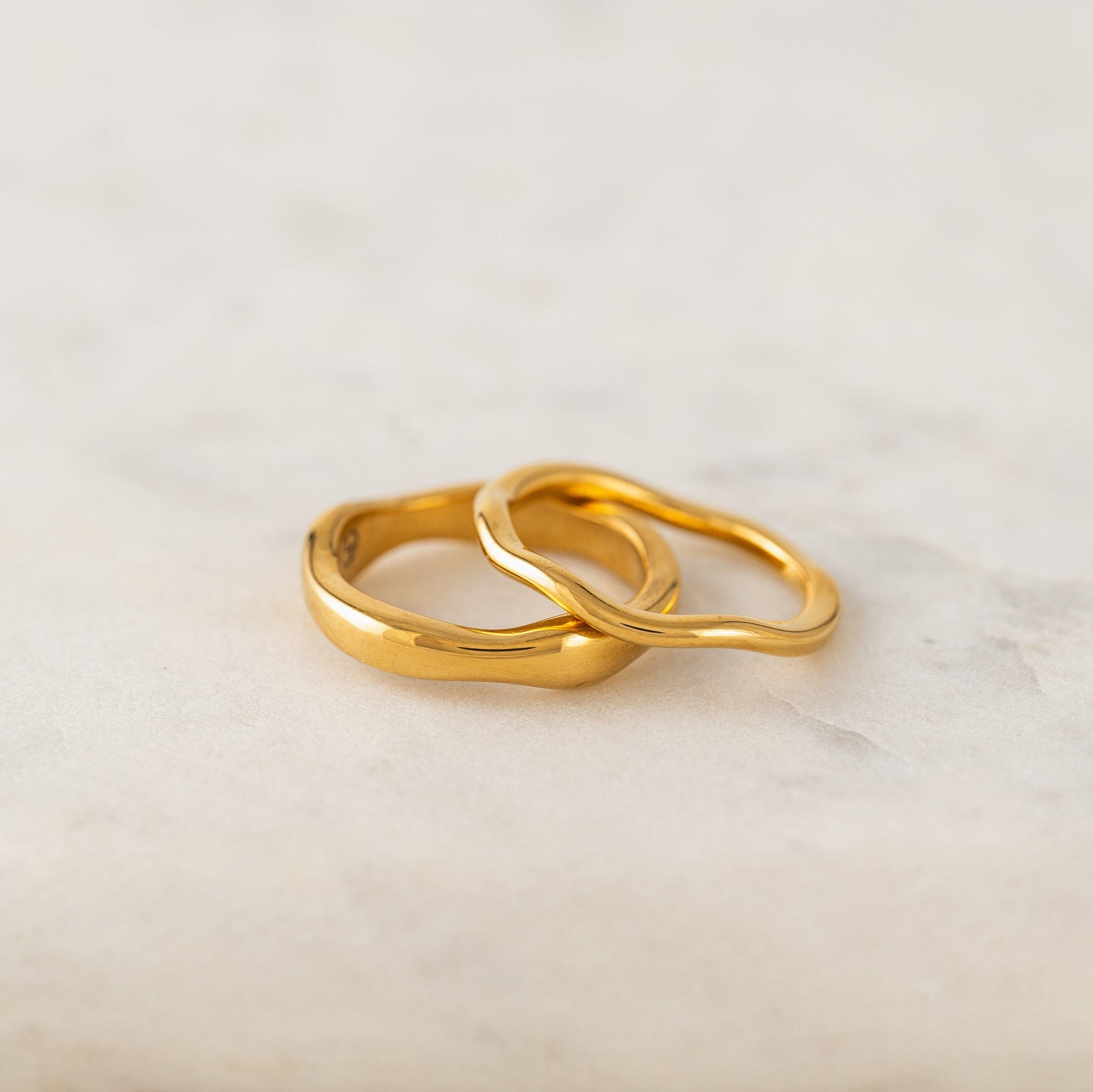 Un ensemble d'alliances sculpturales vous offre toute la tranquillité dont vous avez besoin. Fabriquées en PVD et en acier inoxydable, ces bagues étanches se portent partout.