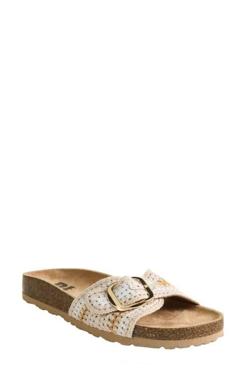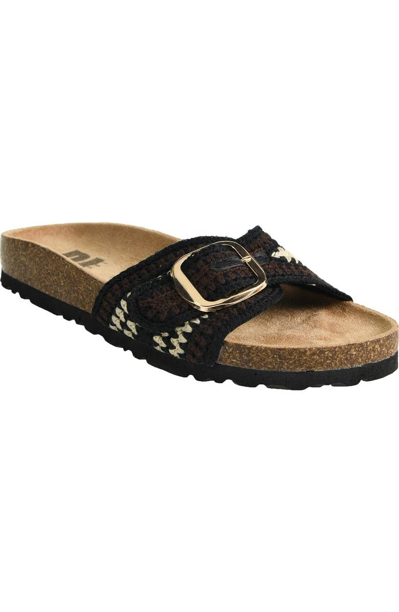 The Tetra Slide is a slip on sandal with an adjustable crochet strap. It features a rubber cork sole for optimal comfort.