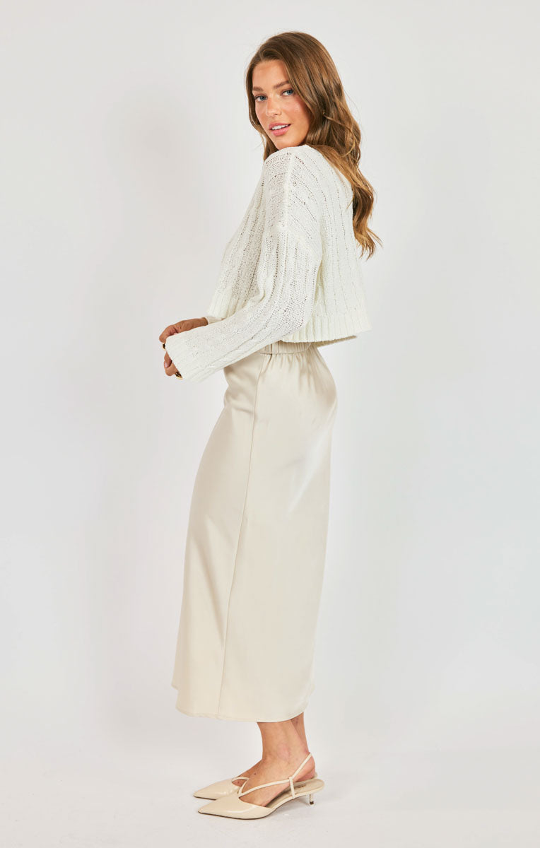 The You And Me Cardi is a gorgeous light weight knit cardigan that features a v neck line, a drop shoulder and a cropped length.