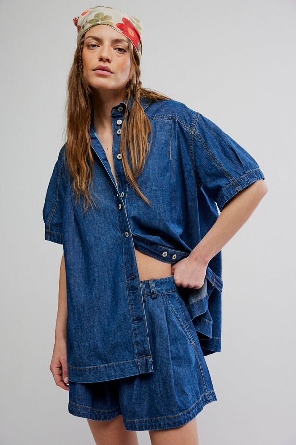 The Griselda Set is a two piece short and top set. The top is a short sleeve, complete with a button up front.