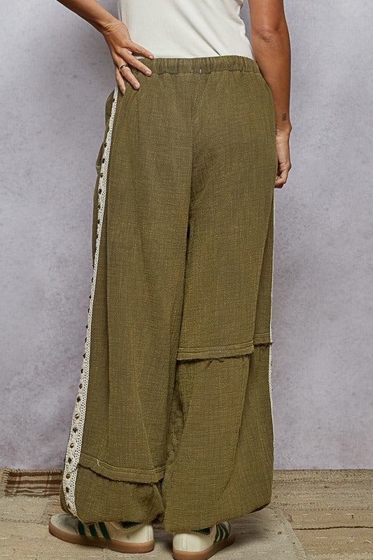 The Kieren Joggers are an elastic waist ballon style jogger that features a panel exposed seams, a detail panel down the sides and a circle seams on the front of the joggers. They have two side pockets and a drawstring.