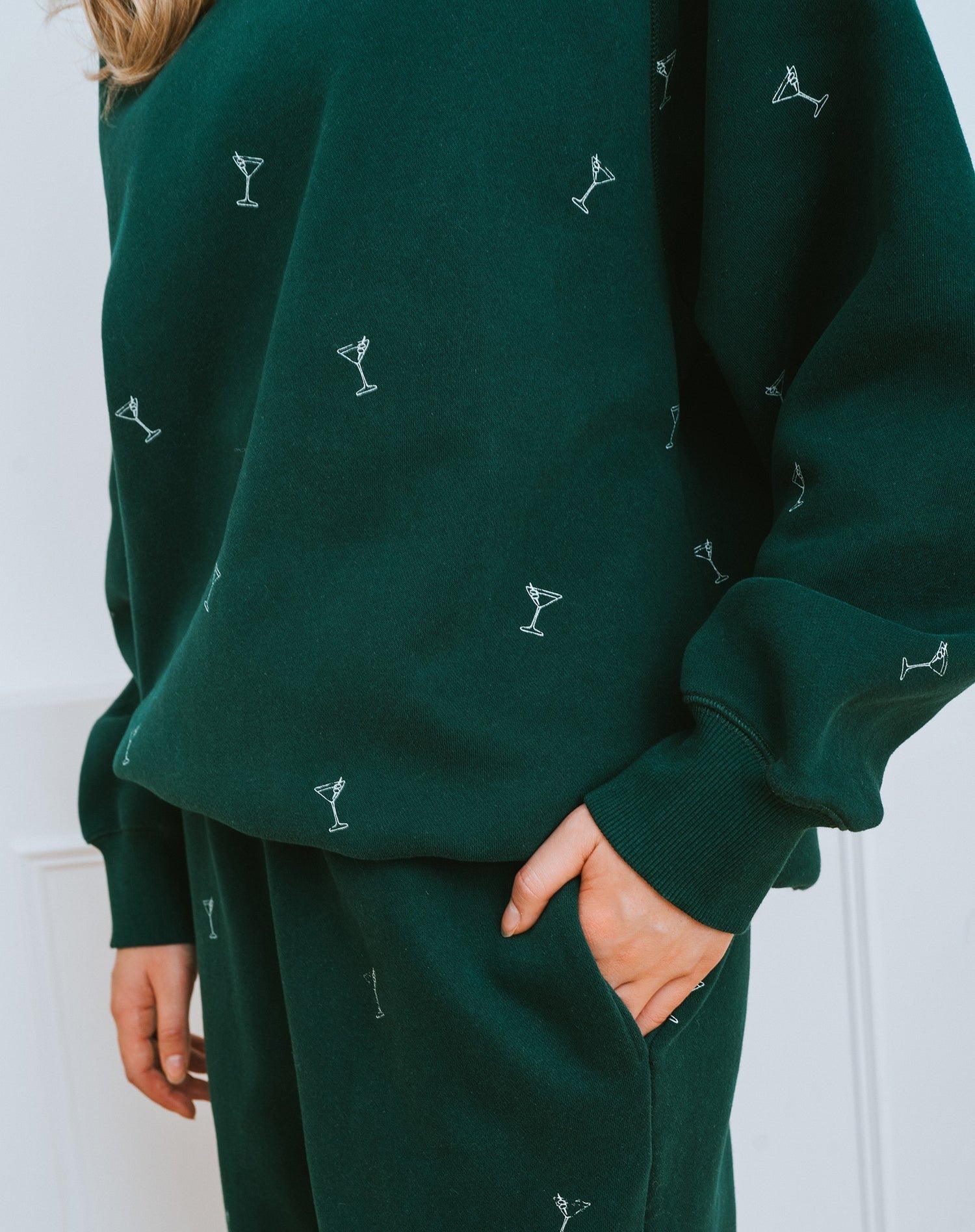 Our All-Over Martini NYBF Crew comes in a rich dark green, oversized and cozy, with a playful, unexpected custom martini print done in our Vancouver HQ that’s entirely one-of-a-kind. Pair with the matching All Over Martini Oversized Joggers for the perfect cozy fit!