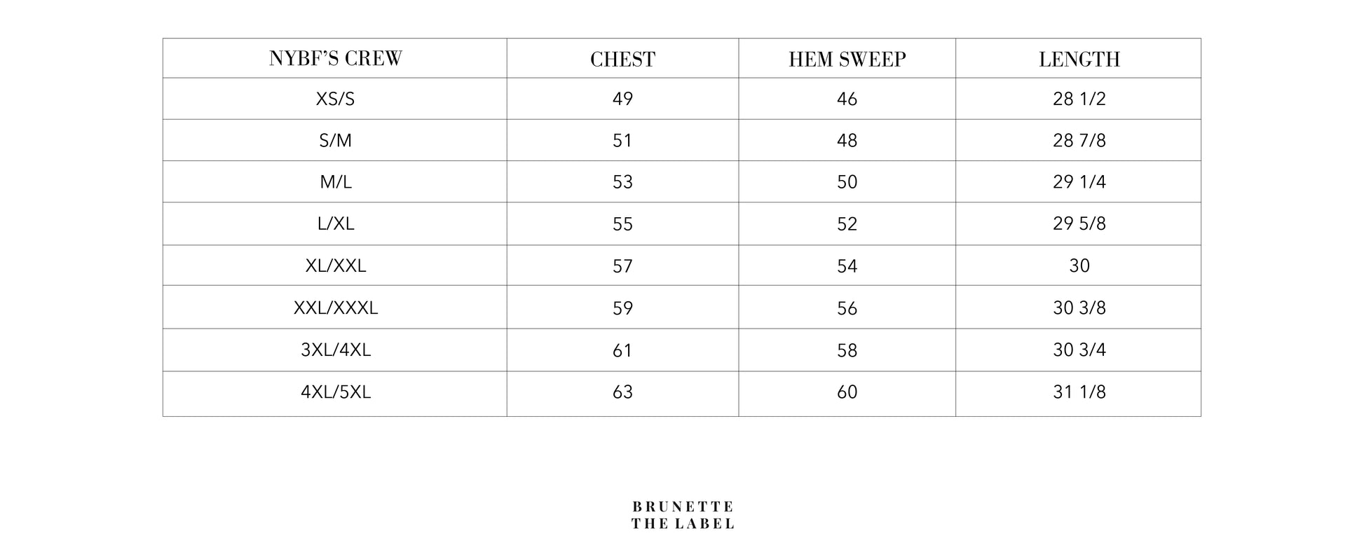 The NYBF's Crew features an oversized fit with raglan shoulders and full, slouchy sleeves. It sits just below the hip with a wide-cut body and hem. Made from our signature cotton-polyester fleece blend, it’s designed to keep you cozy all day, every day.