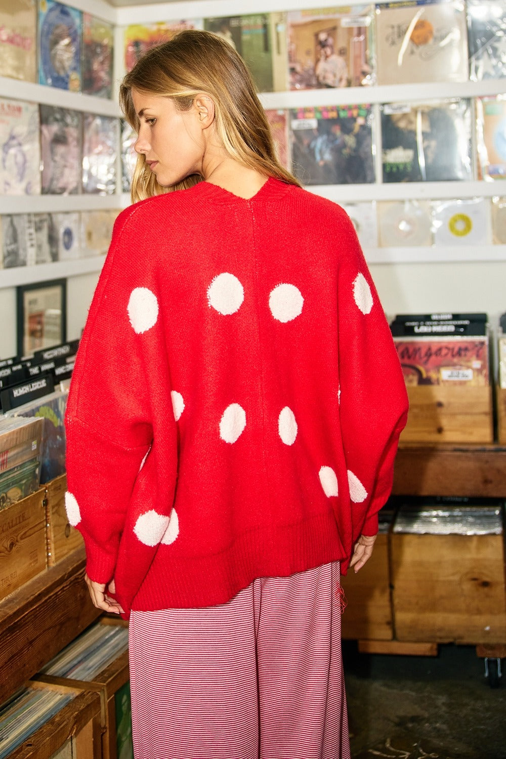 Oversized Polka-dot Pullover Sweater Cardigan.