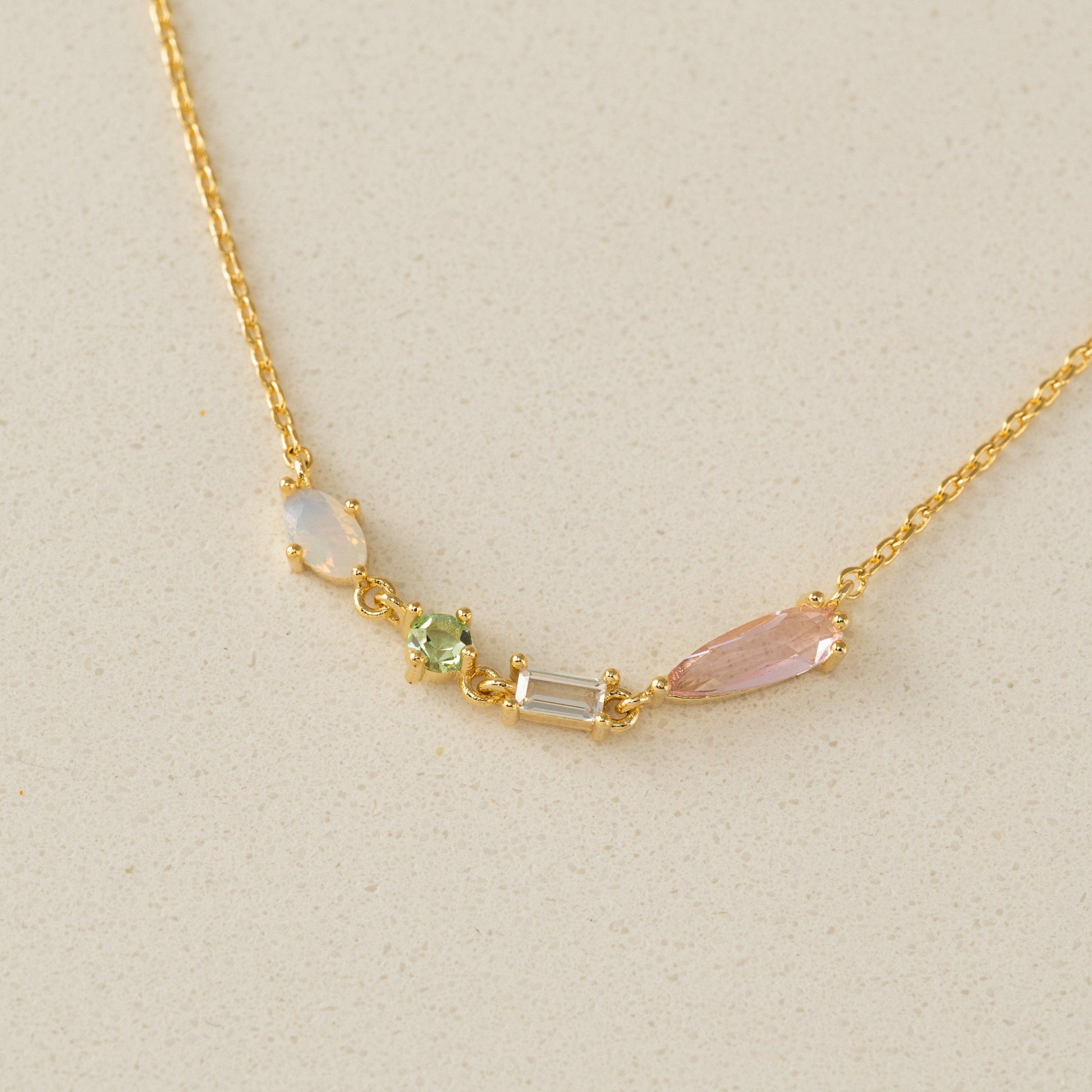 The Sonata Jewel Necklace features a 16" + 2" Extender, Cubic Zirconia crystals and is fabricated in Gold-Plated Brass.