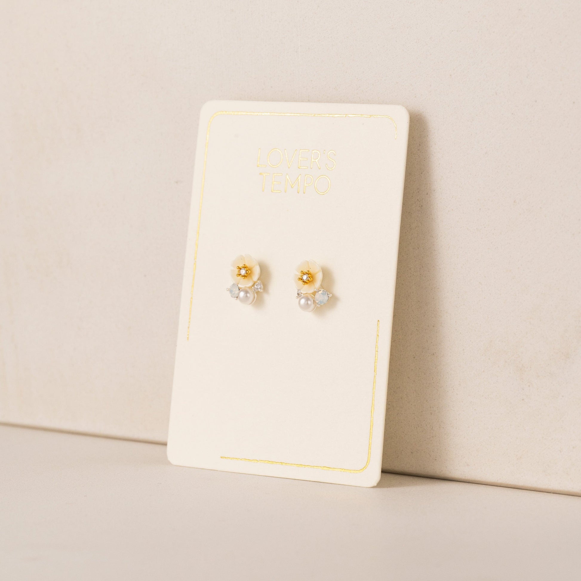 Pearl, crystal and delicate stone petals are meticulously crafted into a graceful stud; a perfect complement to your sweet face.