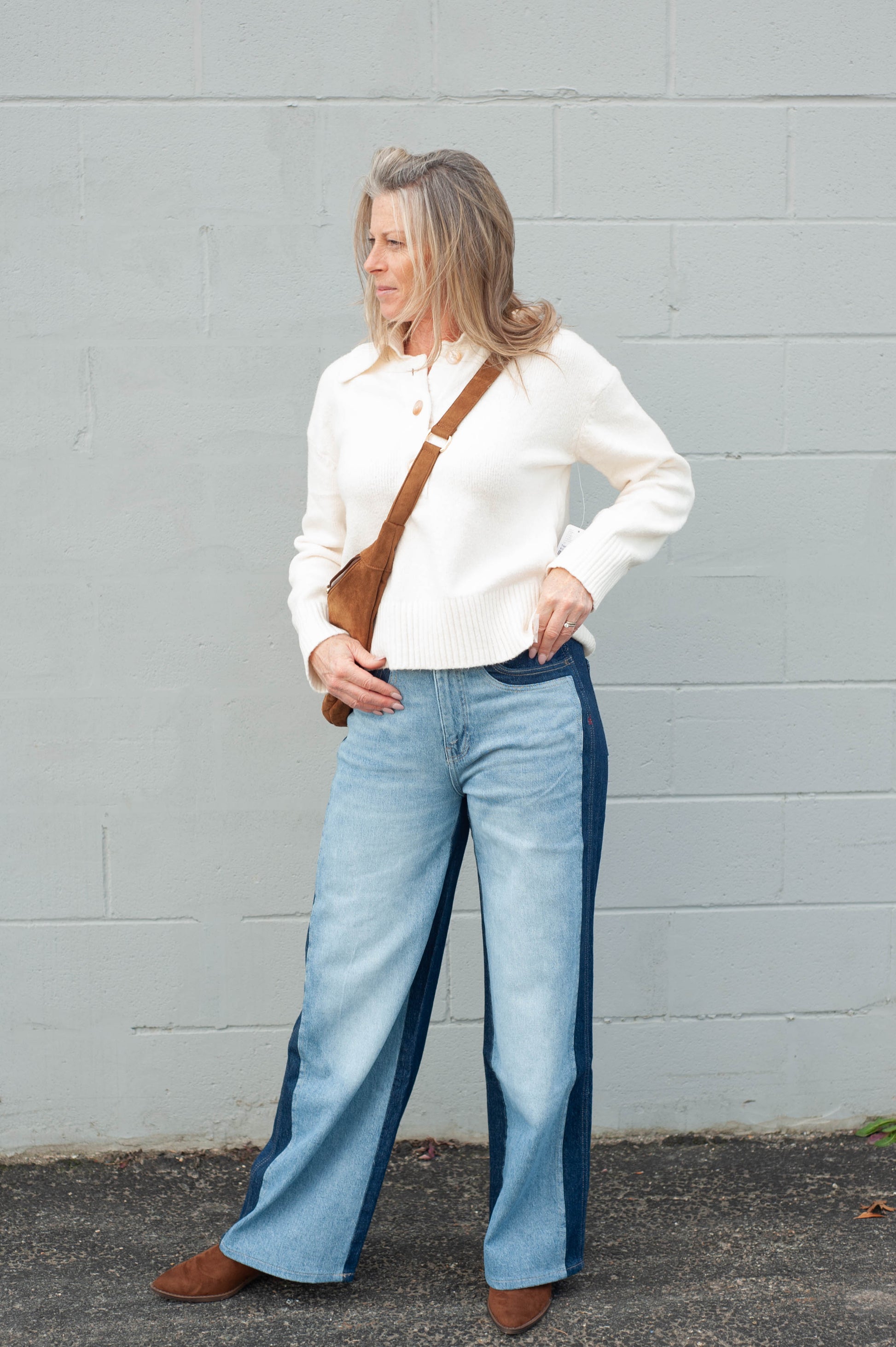 The definition of cozy, this sweater features a classic polo-inspired silhouette, a cotton-blend knit fabrication, and charming tortoise shell buttons.